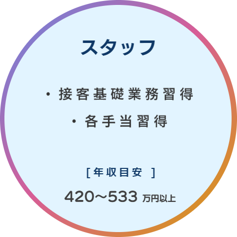 お客様、キャストさん、一緒に働く仲間の為に努力をし続けることができる方であれば、絶対に昇格・昇給することが出来ます。
